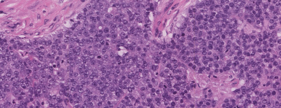 ● The growth pattern of this tumor is heterogenous that can be solid, trabecular, in cords, in tubules, or as single cells